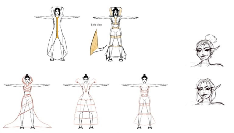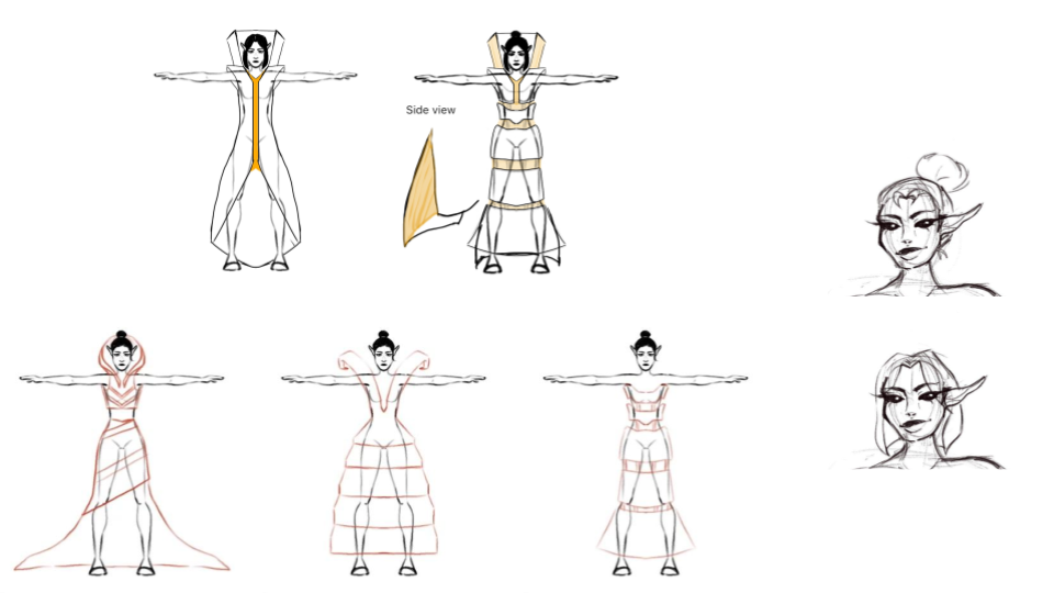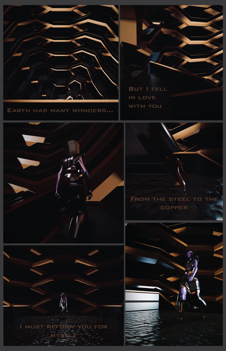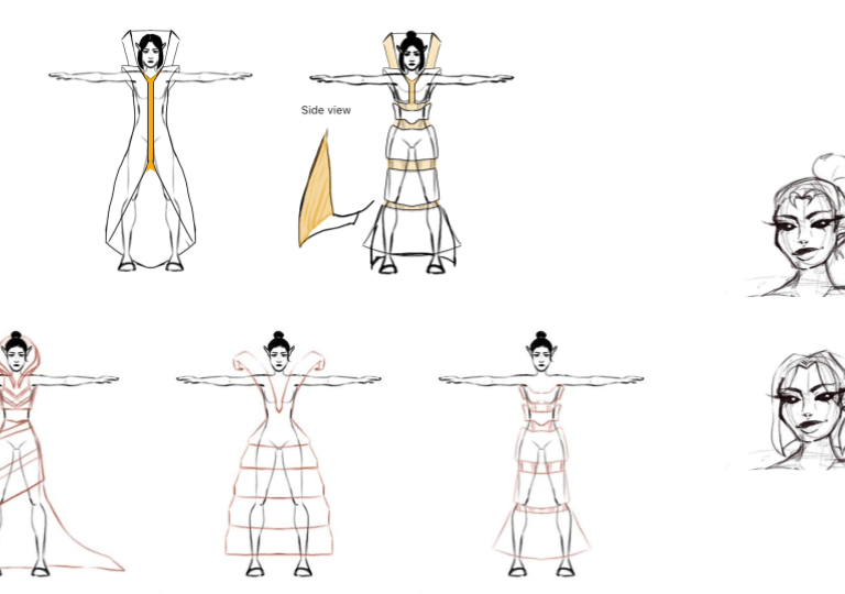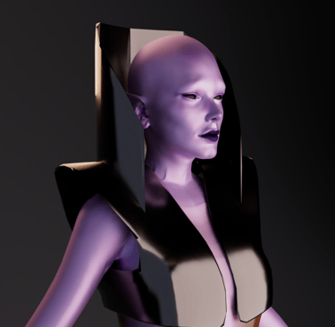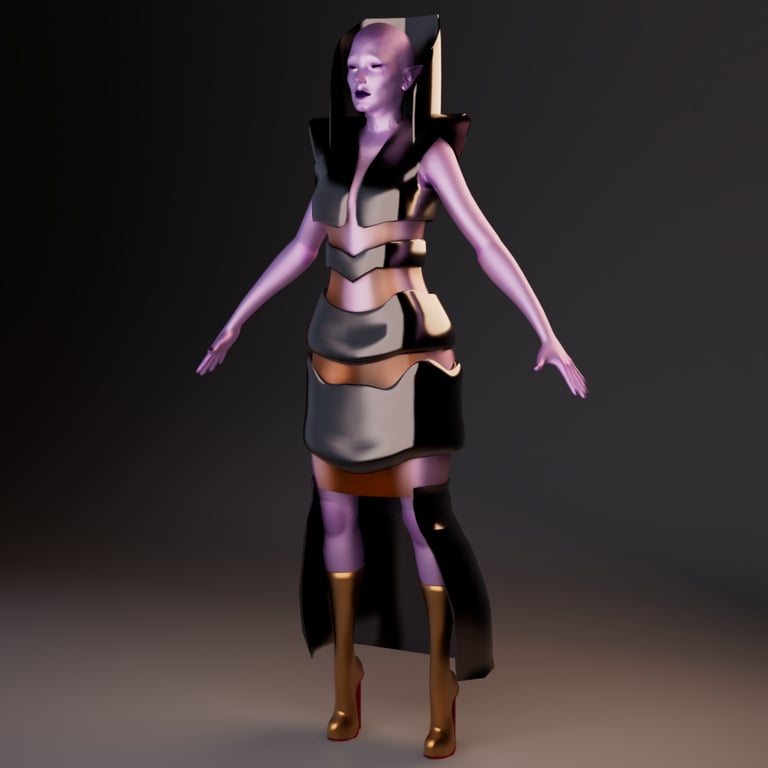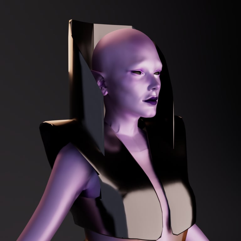 This project was done by me and another peer. She was responsible for texturing and modeling the clothes. I was responsible for rendering, character model, and environment creation. We choose to create an alien fashion designer, Malvina Vessel, who fell in love with the NYC building. The Vessel is not only a beautiful and interesting structure it is also at the center of a shopping precinct. So for my character I wanted to combine the ideas of modernity and the aspects that come with high end shopping. The character wears very avant-garde clothing that is made of the same material as the building. The character will also follow the same ideals of wealth and beauty, this will be shown through the physical appearance. Having high cheekbones and a very thin body will accentuate extreme beauty standards and the greed of perfection that comes with wealth.